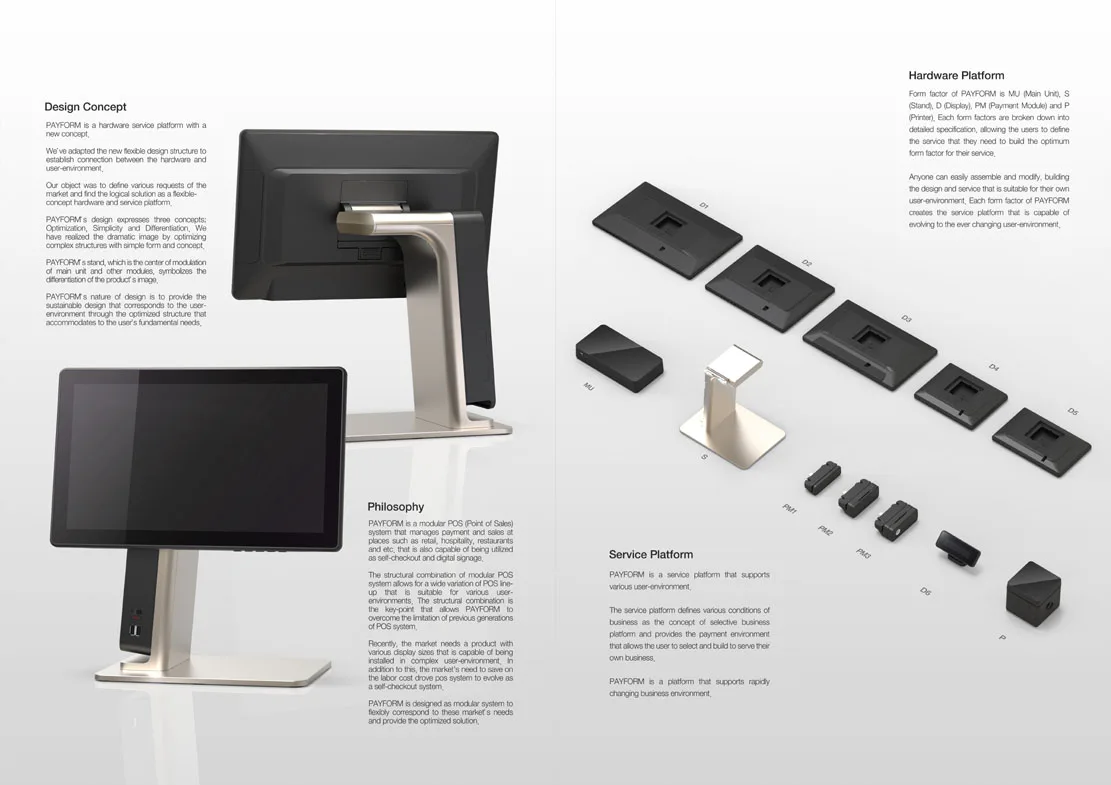 Beyond its modular flexibility, FORZA stands out through its sculptural and refined design language. Unlike conventional POS terminals that often prioritize function over form, FORZA features a harmonious balance between sharp lines and soft curves, creating a modern, sophisticated silhouette. The use of matte and gloss finishes enhances the premium perception of the product, making it not only a functional tool but also a design centerpiece within the retail space.