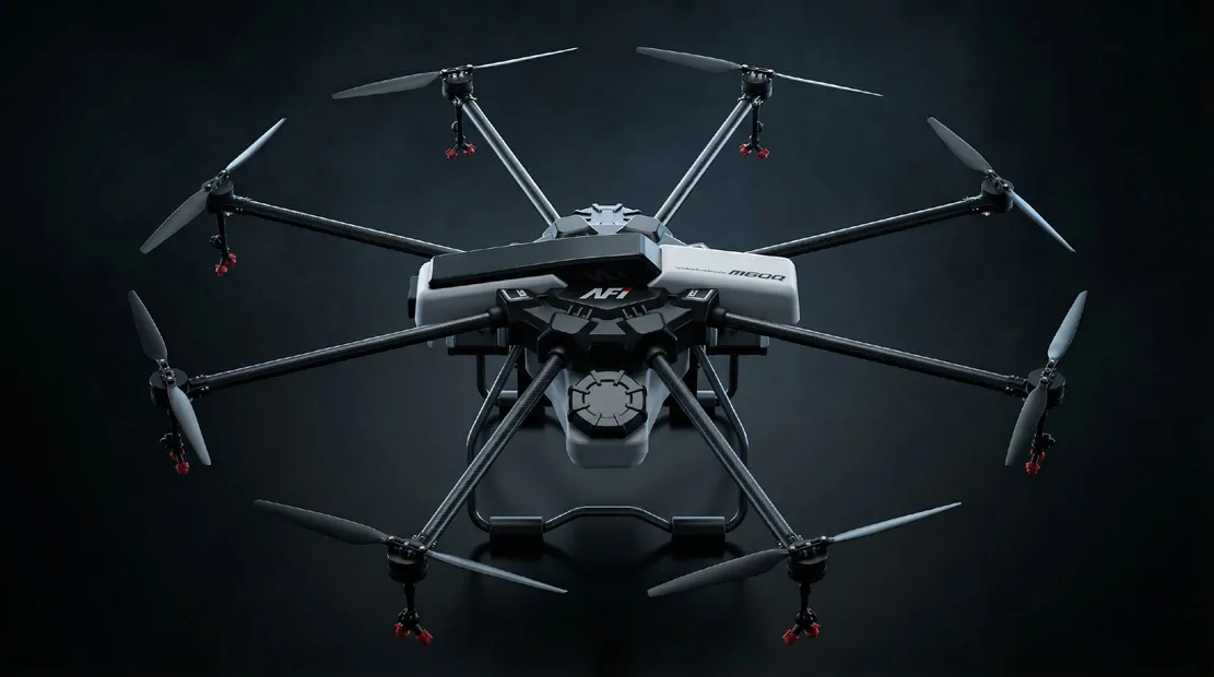 With its expansive 2870mm span and compact 730mm height, the AF-52 achieves both visual balance and mechanical stability. The symmetrical X-shaped eight-rotor configuration enhances aerodynamic efficiency and minimizes vibration during flight. Its rotor arms blend sharp lines with soft curves, projecting speed and precision through a dynamic form.