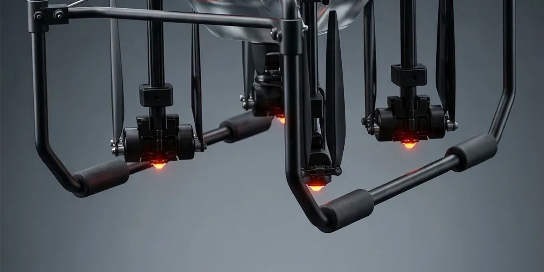 또한 8개의 모터는 각각 독립적이면서도 통합적으로 제어되며, 일부 모터에 문제가 생기더라도 나머지 시스템이 비행을 유지하고 안전하게 착륙할 수 있도록 설계되었습니다. 이와 같은 다축 파워 시스템은 드론의 외형적 무게감과 조형적 강인함을 뒷받침하는 주요 요소로 작용하며, 산업 기기의 신뢰성과 고성능을 시각적으로 체현하는 상징이기도 합니다.
