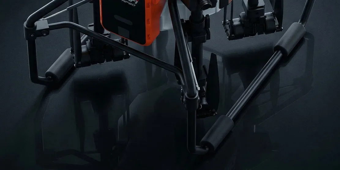 프레임 설계는 비단 구조적 강성을 위한 것만이 아닙니다. 진동 억제 구조와 내화학 기술이 적용된 이 프레임은 장시간 비행 시에도 효율적으로 에너지를 소모하며, 외부 환경 변화에 대한 대응력을 높입니다. 이는 특히 정밀도가 중요한 농약 살포 작업에서 드론이 일정한 고도(45m)를 유지하며, 균일한 살포 폭(912m)을 보장하는 데 중요한 역할을 합니다. 다시 말해, 기체의 강성과 형상은 드론의 안정성과 효율성이라는 성능적 가치로 전환되는 조형의 구조화입니다.