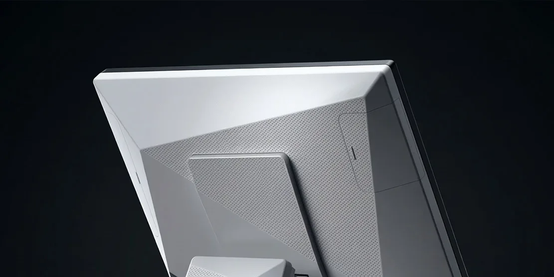 디자인적으로 주목할 또 다른 부분은 인터페이스 요소의 배치입니다. 사용자의 직관적인 동선을 고려하여 포트와 버튼, 입출력 인터페이스는 하단 또는 후면 가장자리로 정리되어 있으며, 이로 인해 전면과 측면의 조형 흐름이 방해받지 않습니다. 이는 사용자 환경을 고려한 실용성과 미적 조형이 동시에 반영된 결과입니다. 또한 전체적인 무게 중심과 밸런스는 스탠드의 기울기와 높이를 통해 조절 가능하며, 다양한 설치 조건에서도 기기의 안정성과 일관된 시각 이미지를 유지할 수 있게 합니다.
