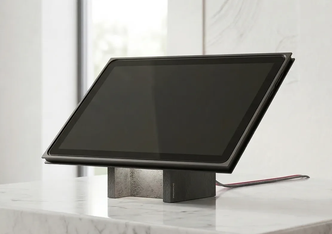The design of the Hotel Integration Service Device aligns with the high standards expected in premium hotels and resorts. The stand material, which evokes the appearance of natural stone, reflects the luxury and natural aesthetics of the hotel environment. This material choice blends seamlessly with the room’s decor, offering an elegant and refined look. Furthermore, the device’s shape is inspired by traditional Zen style, emphasizing minimalism and calm, which creates a serene atmosphere for guests. The Zen-inspired design enhances the overall aesthetic experience, reflecting timeless beauty and promoting a sense of peace and relaxation.